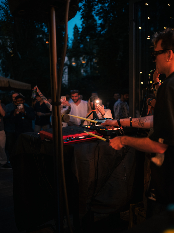 His style mixes organic rhythms and tight percussion – shaped by years behind the drum kit – into vibrant, club-ready tracks and performances.